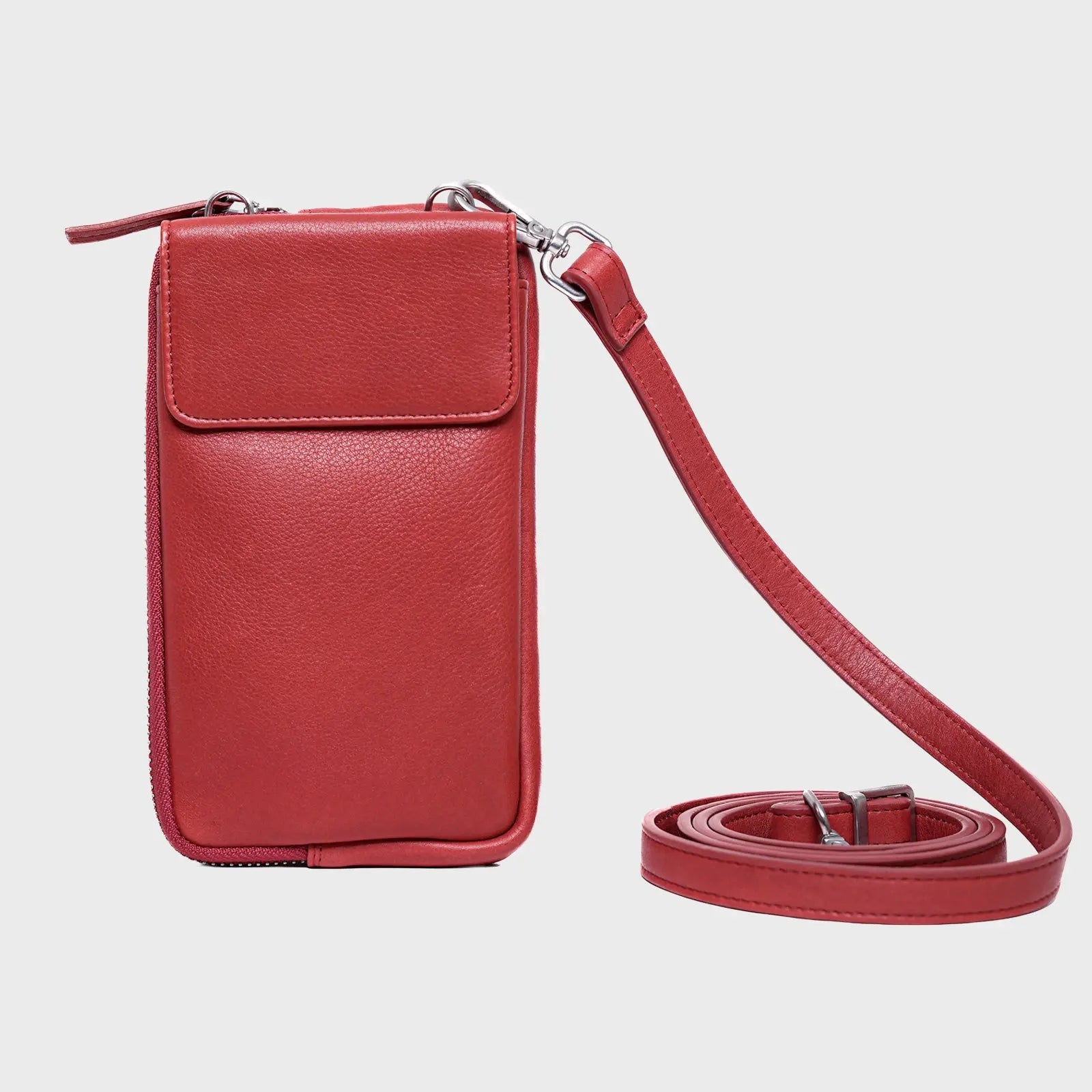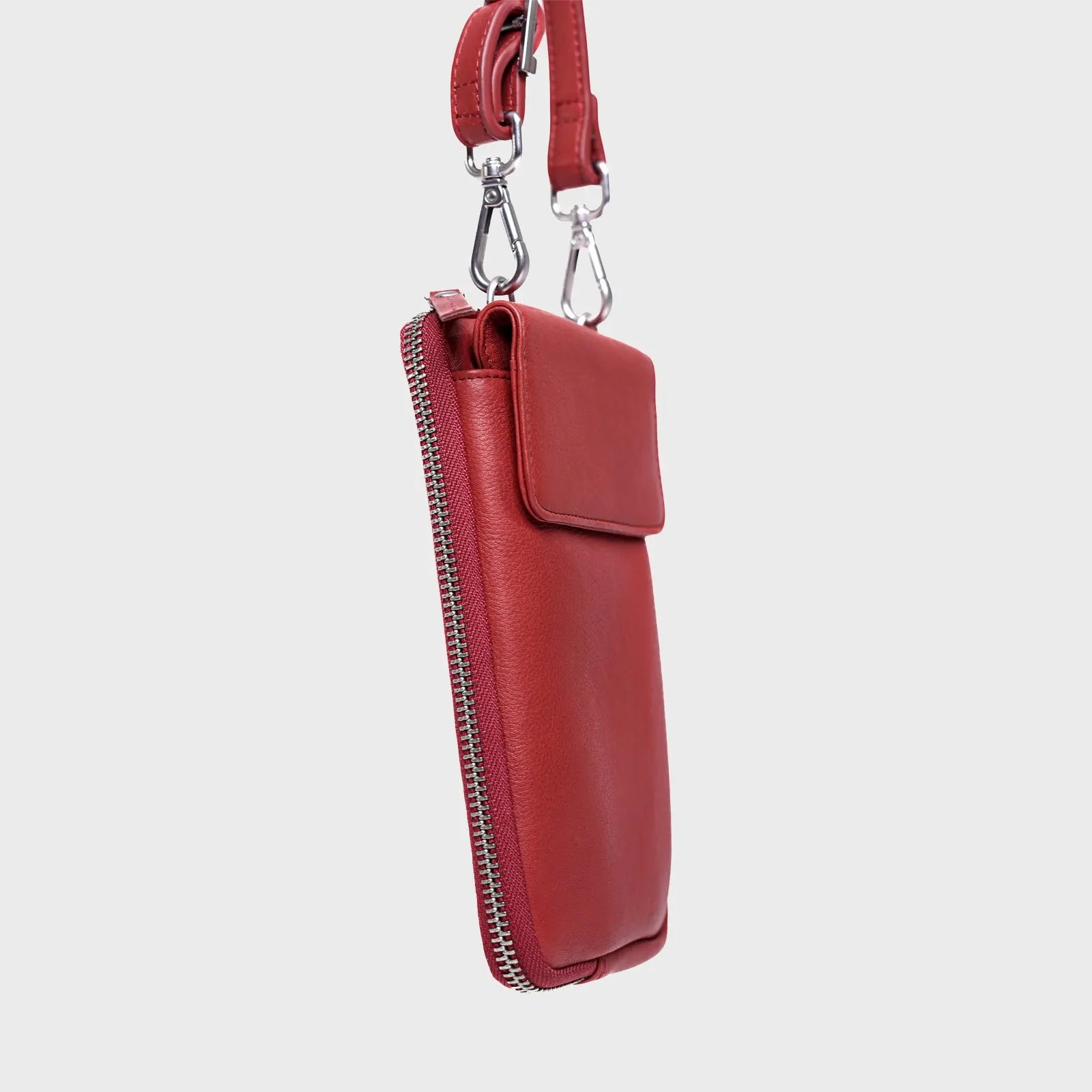 The ABA CROSSBODY / RED . is the perfect companion for days when you want to travel light without sacrificing essentials. This compact bag combines the convenience of a wallet and a phone holder, offering just enough space for your cell phone, ID, cards, keys, and small personal items like lip balm or sunglasses. Designed for effortless carrying and quick access, it keeps your must-haves organized and within reach, making it an ideal choice for on-the-go lifestyles. Choose ABA CROSSBODY to simplify your outings with style and practicality.